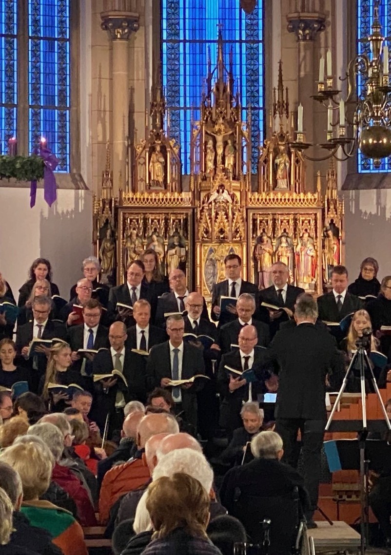 "Schnallen Sie sich an, lehnen sich zurück und genießen das Konzert, denn jetzt geht es ab!" So begrüßte der Vorsitzende des Motettenchores die Zuhörer in der voll besetzten St. Marienkirche. "Mal was anderes" hatte sich der Chor vorgenommen und gemeinsam mit der DijaCo Big Band aus Dinklage und Beate Stanko als Sopran im April 2024 das "Sacred Concert" von Duke Ellington aufgeführt, inklusive Steptänzer. Ein tolles Konzert!