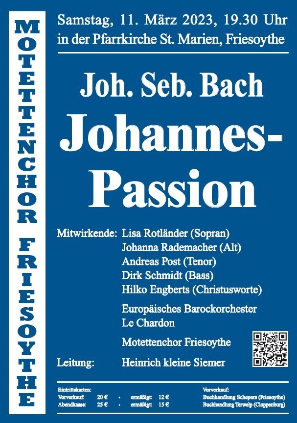 Im März des Jahres 2023 führten wir, wieder mit dem wundervollen Barockorchester Le Chardon und namhaften Solisten, die Johannespassion von Johann Sebastian Bach auf. Ein unbeschreiblich schönes und intensives Konzert